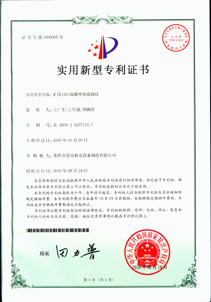 焦作景安公司始終堅持“以科技為先導(dǎo),以市場為導(dǎo)向”的發(fā)展戰(zhàn)略,不斷進(jìn)行新產(chǎn)品的研制和開發(fā),在國家“六五”到“九五”期間,承擔(dān)和參與了國家多項科技攻關(guān)項目,產(chǎn)品的技術(shù)和質(zhì)量一直處于全國同行業(yè)領(lǐng)先位置。并被中國電器工業(yè)協(xié)會評定為“質(zhì)量可信產(chǎn)品”。特別是在礦用防爆燈領(lǐng)域,礦用隔爆型半導(dǎo)體(LED)照明燈具,2008年列入國家火炬計劃,獲2009年河南省工業(yè)和信息化廳的科技成果二等獎,并擁有多項國家專利。 |
